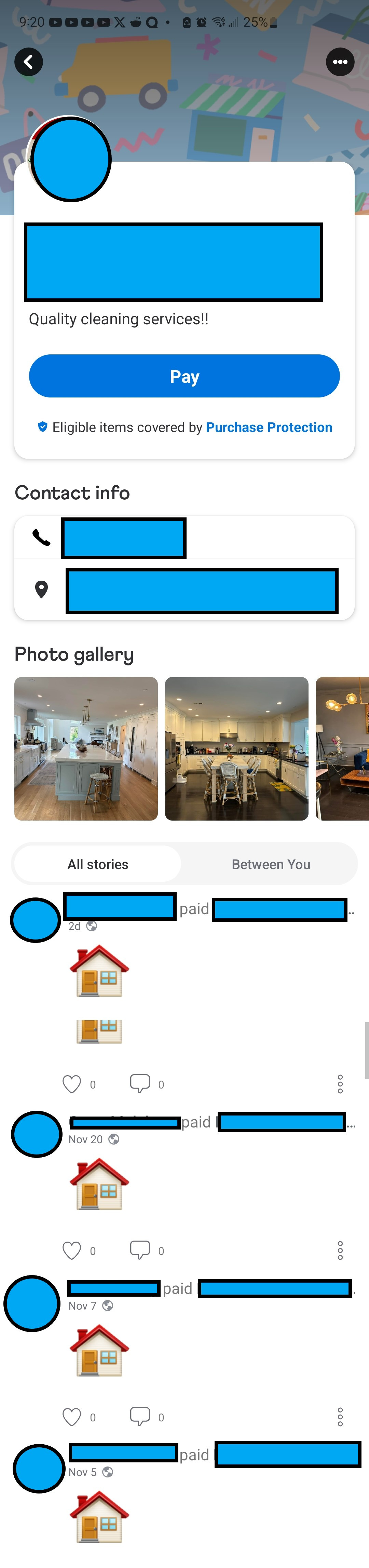 The other business I found, Premier Movers, LLC, is doing it correctly. They have all of their business details but obfuscate the payment transitions with clients.